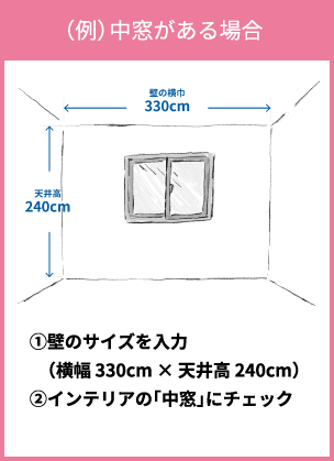 壁の横幅と天井高を入力するだけ。