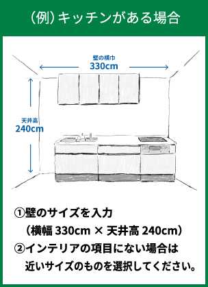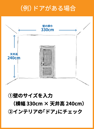 ご希望の壁の横幅と天井高のサイズを入力し、